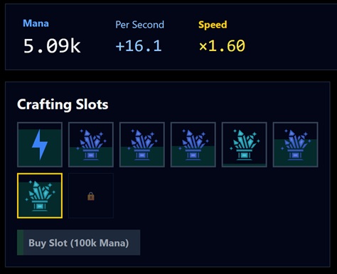 crafting at 1e33 (but okay for the current tiers)